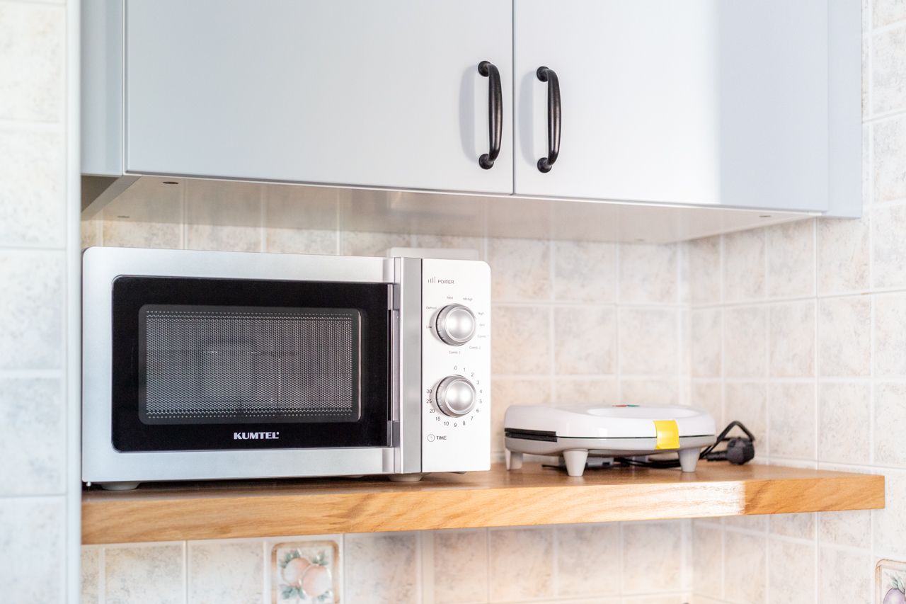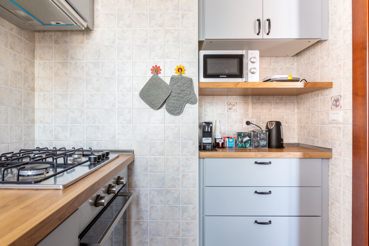 - Gas stove, electric oven and basic equipment for cooking